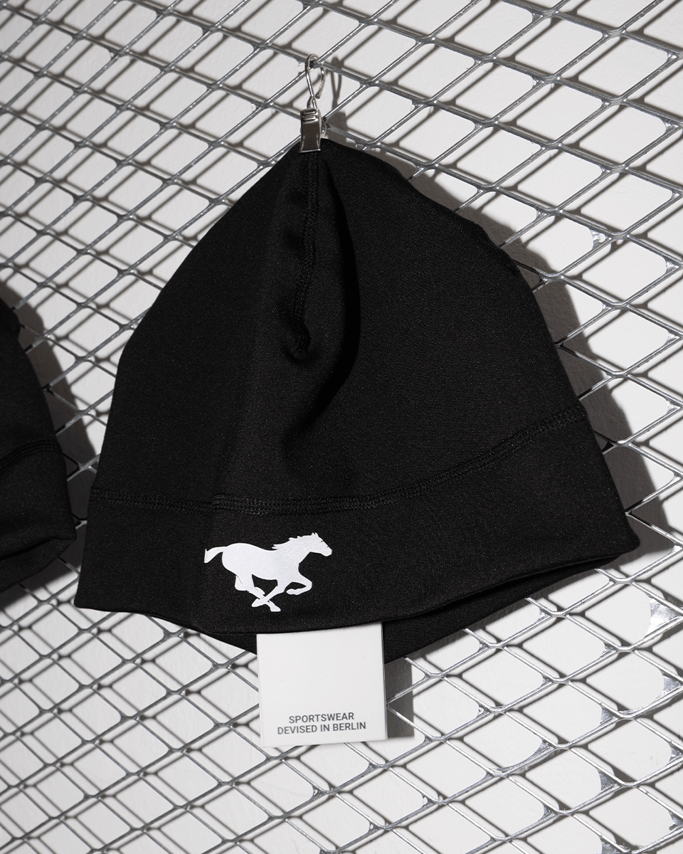A lightweight running beanie designed for everyday performance. Features a reflective horse logo placed at the side for subtle visibility. Finished with a soft fleece inlay for warmth and comfort without bulk. Flatlock seams add durability and create a clean contrast detail. Minimal, functional, and built for movement.